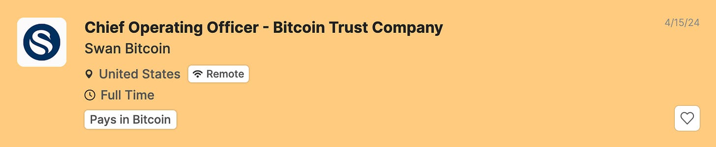 Last year, Swan announced the intent to launch a Bitcoin-only trust company. Now, we are working toward building a pipeline of highly qualified individuals to help us lead this company.